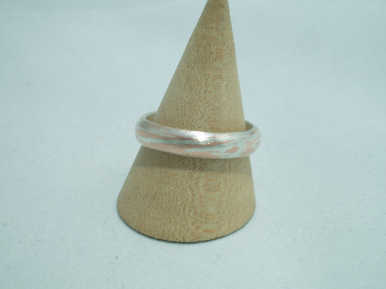 何度も書いている気がしますがそれでも書きます。マーブル型の新木目金は失敗が一切許されないため、今まで平打ちで作っていたリングを甲丸にするというだけでまた難易度が上がります。平打ち型で作り終えてから甲丸に削っていくという手もあり、それで比較的安全に作れるようにはなりますが、そこまで至るには結局同じなのでどちらにせよ甲丸型は値段が高くなります。