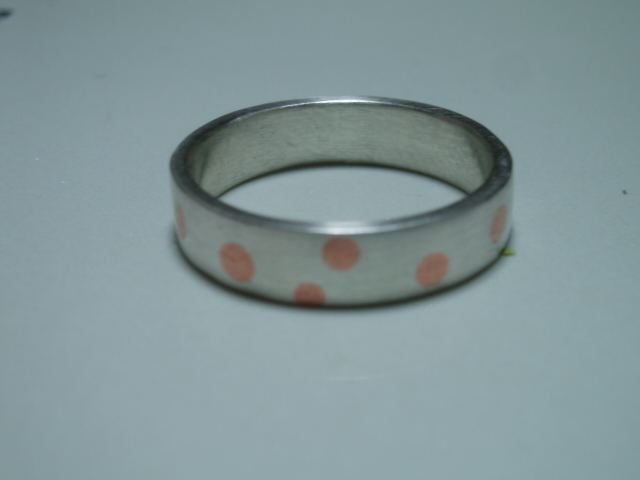 今回は、新木目金を使った水玉模様のリングです。ありそうでなかったのではないでしょうか。