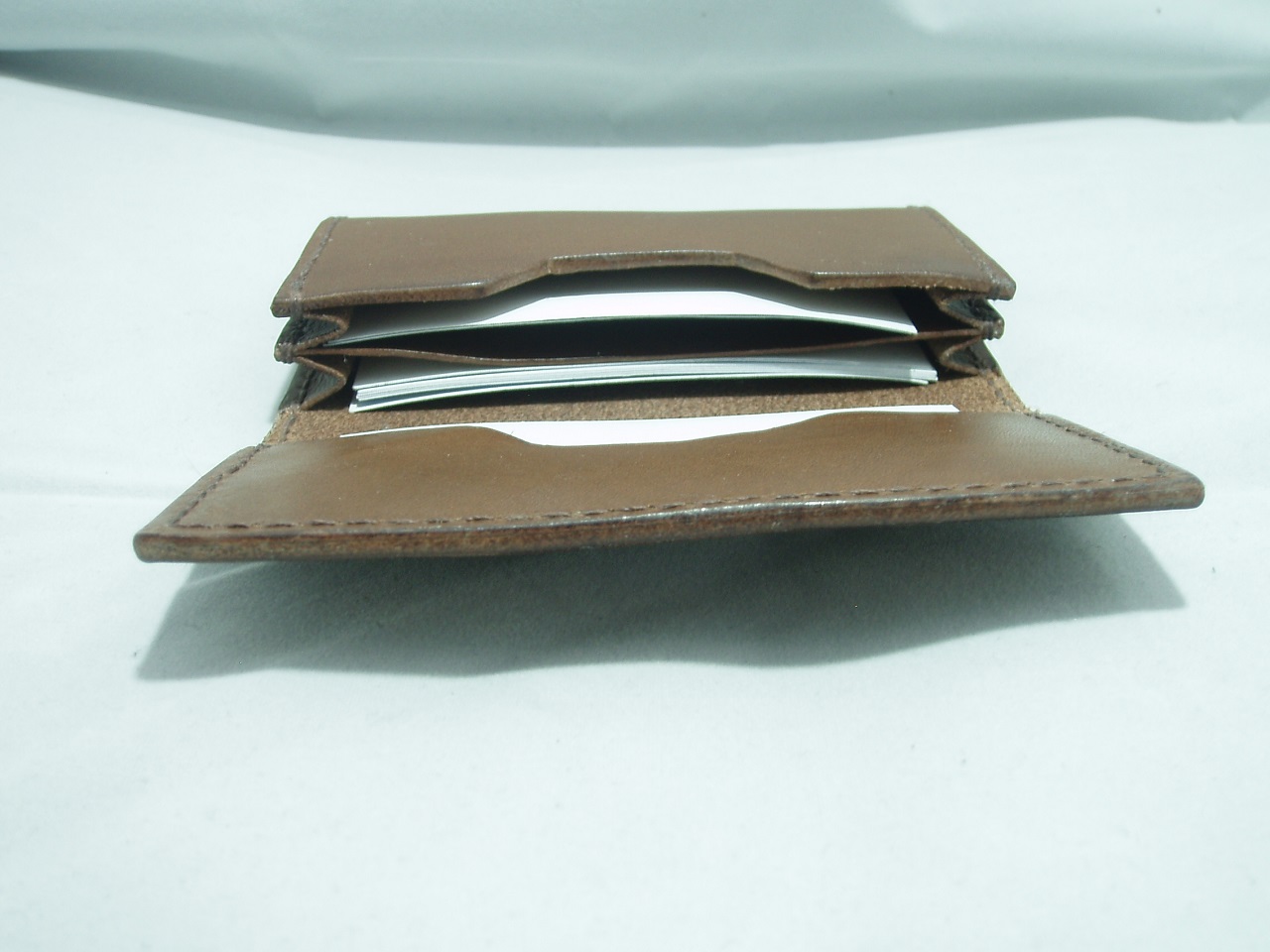 前の栃木レザー名刺入れと比べて1cm程幅広にして、嵩張る代わりに名刺の出し入れをしやすくしたタイプです。