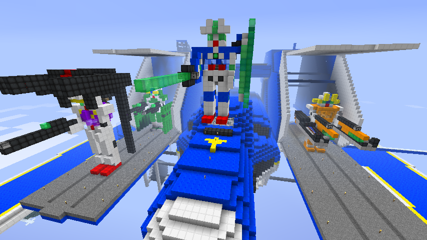 MinecraftというPCゲームで、機動戦士ガンダム00のソレスタルビーイングを結成するという目的で建築を行っています。ただこの世界、1ブロックが1mなので、特大サイズのものでないと、なんとも可愛らしいと言うか、コレジャナイ感じになります。おもちゃでコレジャナイロボというのがあるのですが、まさにそんな感じです。