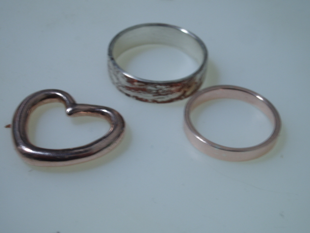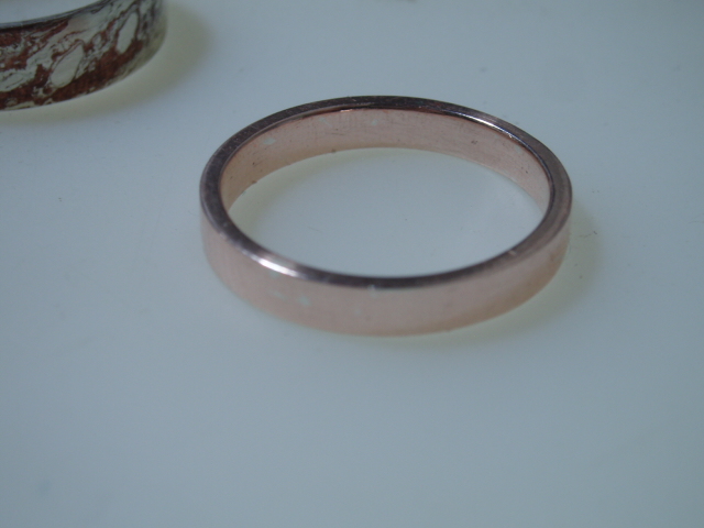 また銀粘土、銅粘土でピンクシルバーの作成実験をしてみました。今回は木津千里(このネタ分かるかなあ…)としたものが出来るか、細めの11号平打ちリングを作って試しました。