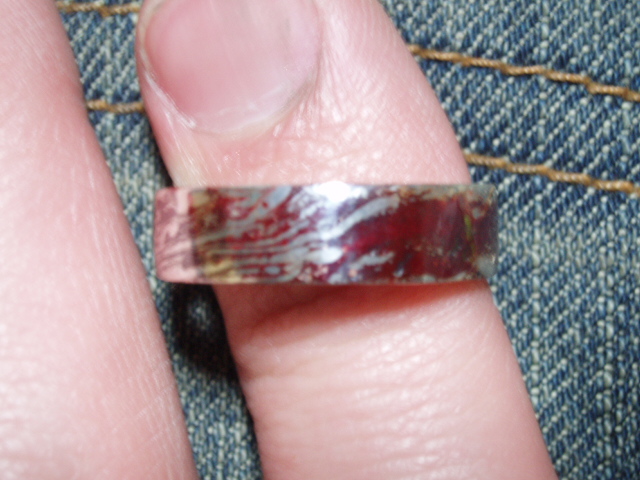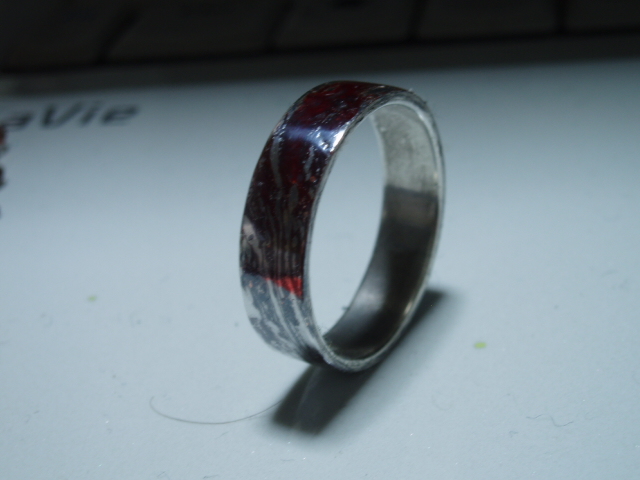 普通に銅のみの作品を作ってから実験するべきなのでしょうが、どうせ新木目金にも使うんだからと使っていた指輪を実験に使いました。