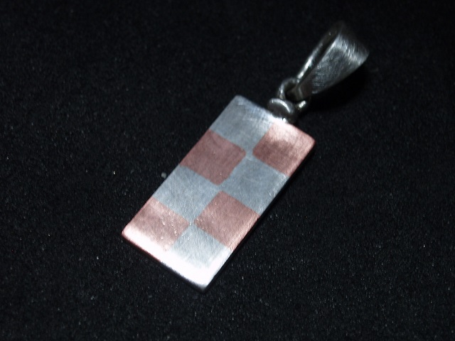 今回の作品は新木目金技術を使った市松模様(チェック柄)のペンダントトップです。以前依頼で作ったものを一回り小型化したものです。