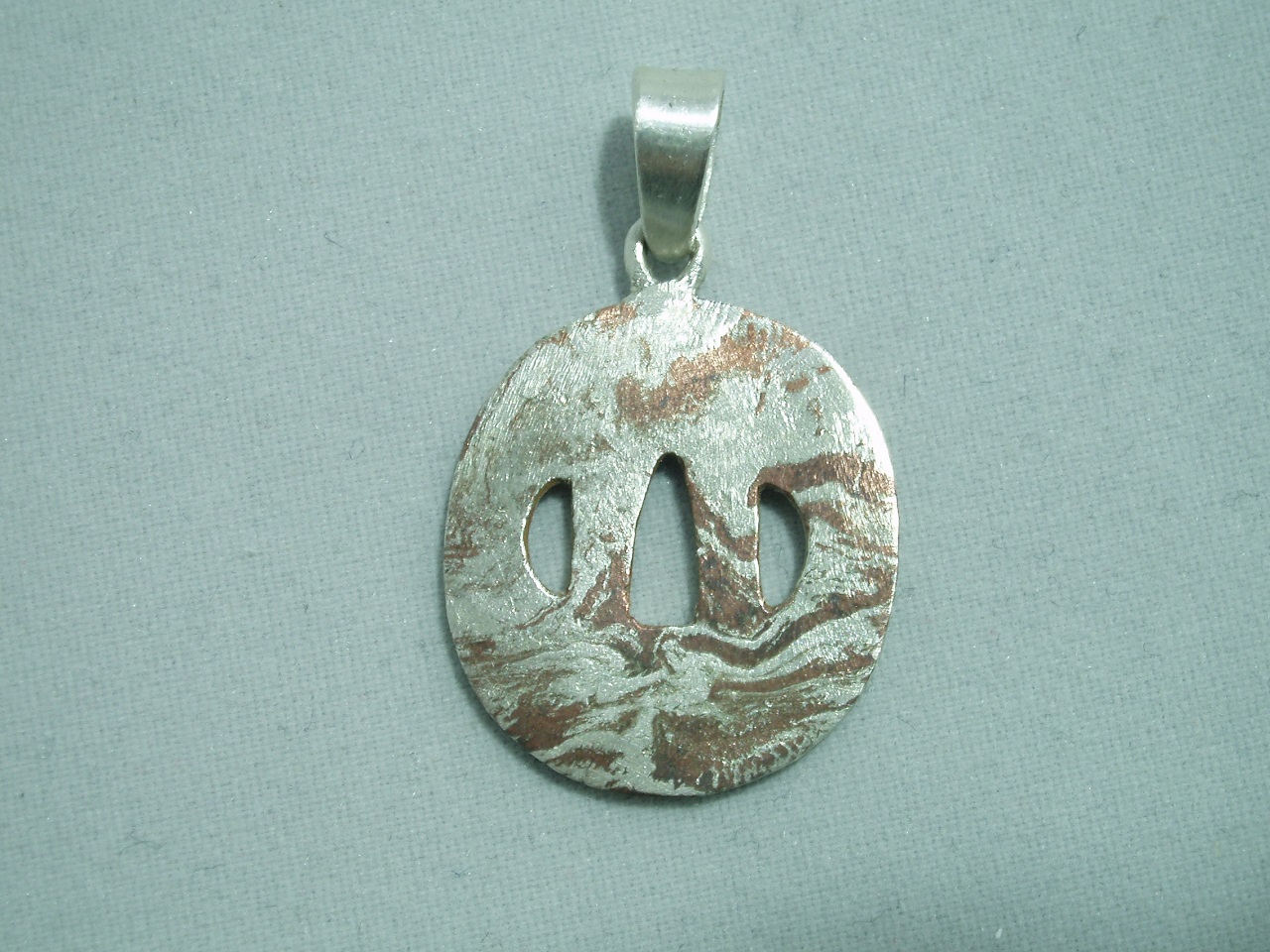 Atelier Trailにて新木目金刀の鍔型ペンダントトップの販売を開始しました。リバーシブル型なので、銅の金属アレルギーがある方には厳しいですが、一つで二つの模様が楽しめます。