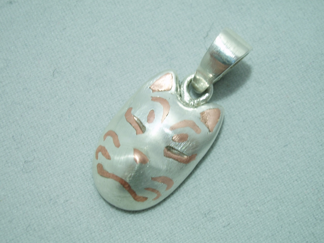日本の伝統的なきつねのお面を自分なりのパターンで新木目金で製作したものになります。技術もモチーフも日本発祥のものなので和物が好きな方にはピッタリだと思います。もしかしたら外国の方の方がOh!Japanese fox mask!てきなノリで買ってくれるかもしれませんね。