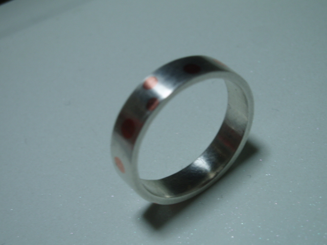 今回は、新木目金を使った水玉模様のリングです。ありそうでなかったのではないでしょうか。