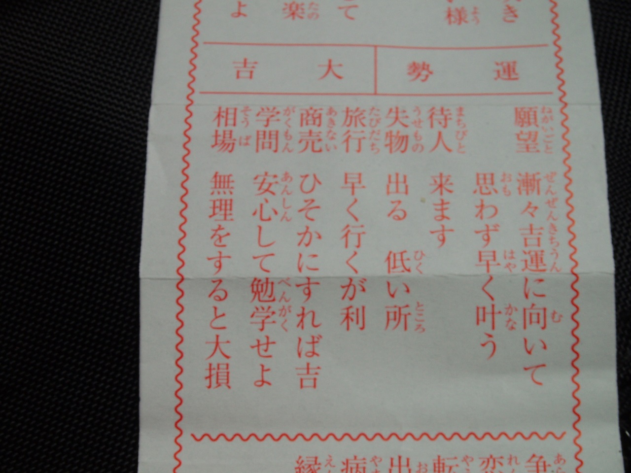 実家では妹家族と初詣に行ってきました。今回はおみくじを持って帰ってきたので少し紹介を