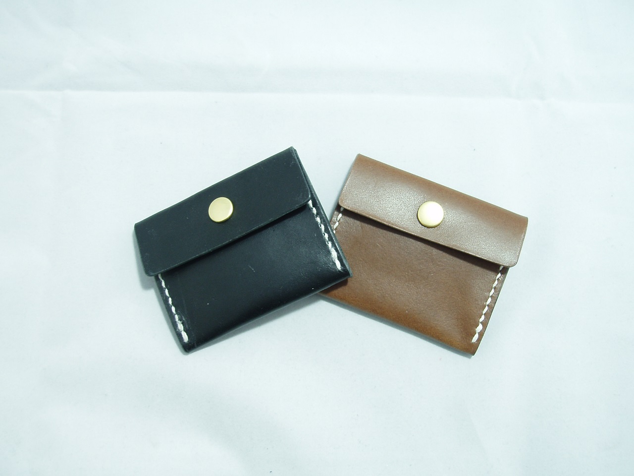 以前二つ折り財布を作っていた時のコインケース部分を見て、単品でもいいんじゃないかと作ってみた品です。栃木レザーが先になったのは当時イタリアンレザーのほうが財布一つ作る分でピッタリな面積しかなかったためです。