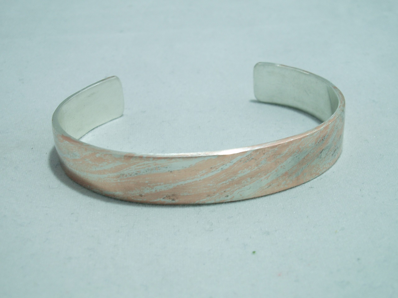 こちらは名前の通り以前の新木目金バングルの高強度版になります。銅と混ぜている表面側の銀をシルバー950にしたもので強度が向上されてます。