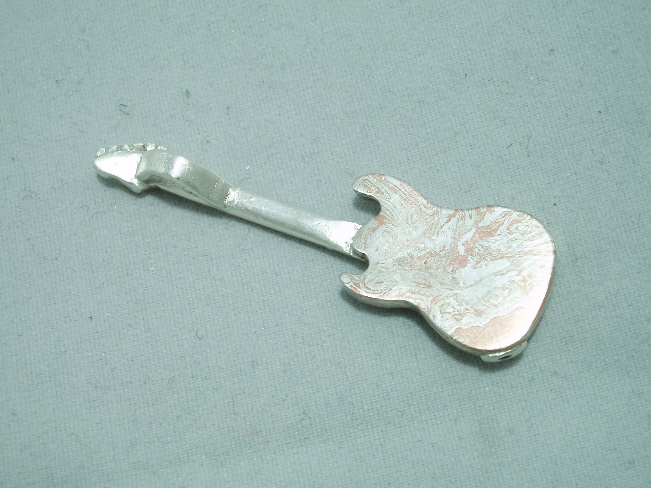 銀だけならまだそこまで難しくないのですが、この構造となるとかなりの難易度になり、現状当店で販売しているものの中では最高額となってしまいましたが、このようなギターペンダントを作っているのは現状私だけのようなので、もしも他とは違うギターペンダントを探しているのであればうってつけかと思われます。実際作った私自身今回は力作だと思っているので、ぜひともご検討ください。